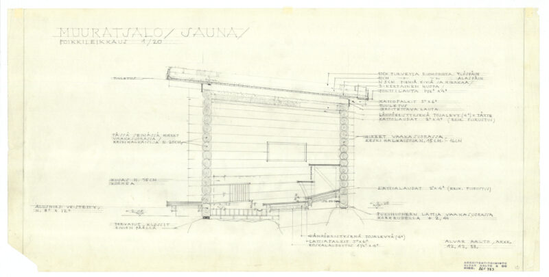 コエタロサウナ 断面図 アルヴァ・アアルト 所蔵:アルヴァ・アアルト財団