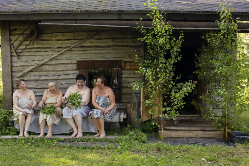 サウナ小屋の前でクールダウンする人々 撮影:Katja Lösönen / Kalevala Women’s Association, Finland